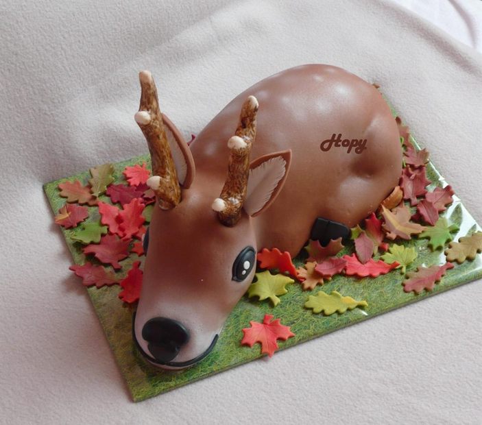 3D dort ve tvaru srnce, potažený pravým marcipánem.
