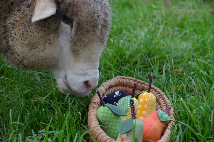 Hruštičky podle časopisu Marina Quilt a ovečky z naší zahrady:) vlastně jedna, ta co se nejmíň bojí...:)