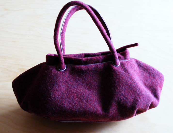 Látková kabelka zpracovaná klasickým způsobem kožených kabelek je z flaušového materiálu s jemným proužkem a je kombinovaná s šecým saténem.