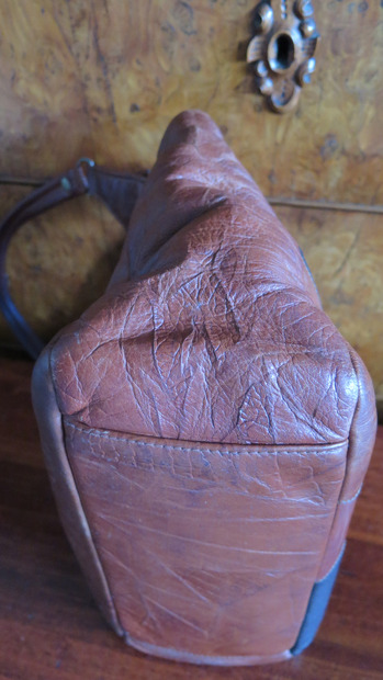 Ukázka mé práce. Tuhle kabelu jsem šila před asi 13 lety. Je nošená s kratšími přestávkami pořád. Jako každá ženská jí využívám na 248% - přetěžovaná jak váhově, tak objemově. Opotřebení je patrné, především ale na podšívce. Kabela jako taková drží až neuvěřitelně, žádné zásadní poškození se neobjevuje.
