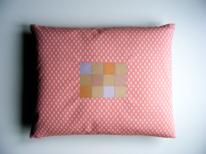 Obdélníkový polštář z bavlněné dekorační tkaniny je doplněný patchworkovou vsadkou.