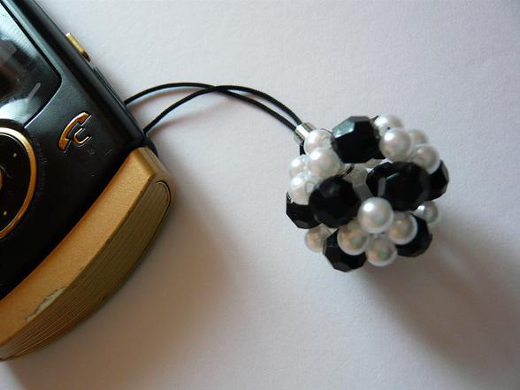 Šitá kulička z černých ohňovek a malých perličkových korálků.