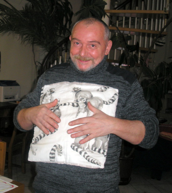 Šťastný obdarovaný sponzor živých lemurů se Slávčinými lemury (uBorůvky):-)