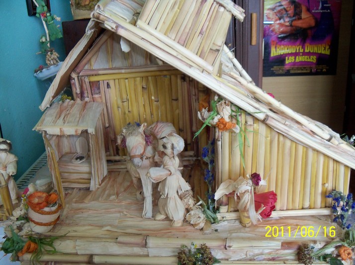 Autentická tvorba z kukuřičných tyček a šustí ruční výrobou. Květinová výzdoba je přírodní a z barveného šustí.