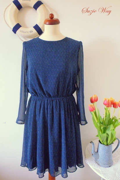 Šatky jsou ušity z viskózového šifonu s jemným vzorkem. Jsou podšity černým viskózovým úpletem, takže nejsou průhledné. Rukávy jsou nepodšity. Na zadním díle "slzička" pro snadnější oblékání.