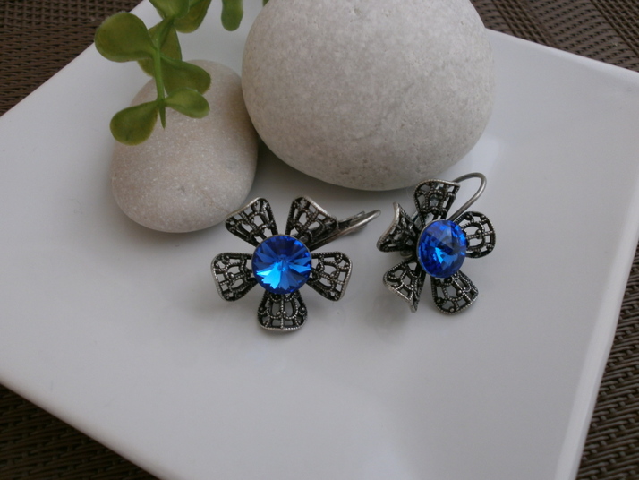 Náušnice Leona z francouzského starostříbra v kombinaci se Swarovski. Barva Saphire. Možno vyrobit v různých barvách.