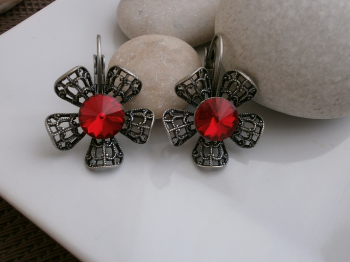 Náušnice Leona z francouzského starostříbra v kombinaci se Swarovski. Barva Light Siam. Možno i v různých barvách.