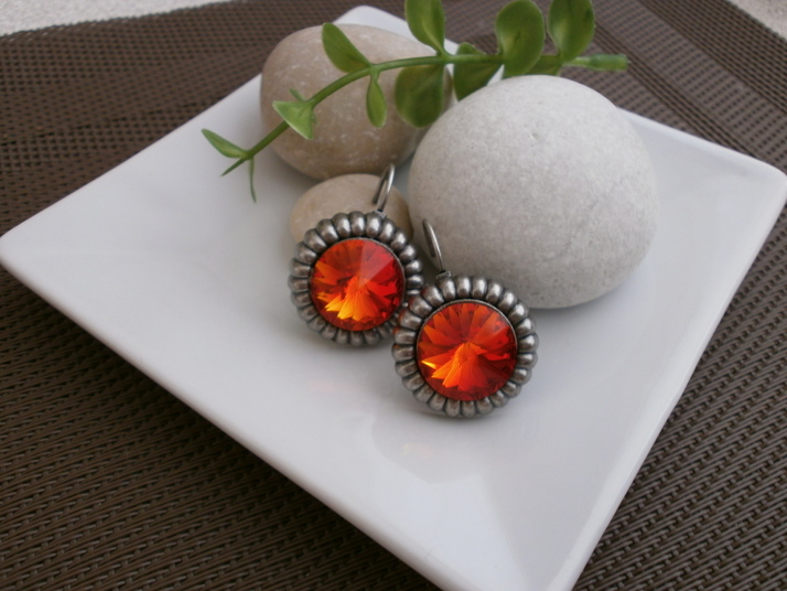 Náušnice věnečkové z francouzského starostříbra v kombinaci se Swarovski. Barva Fire- ohnivá. Možno i v jiných barvách.
