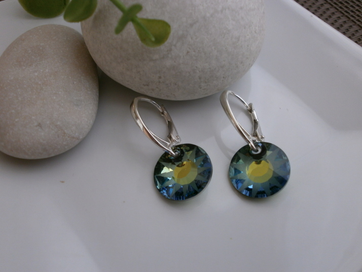 Stříbrné vytuněné náušnice - klapky v kombinaci s kamenem Swarovski- kolečko. Barva Sahara. Možno i jiné barvy.