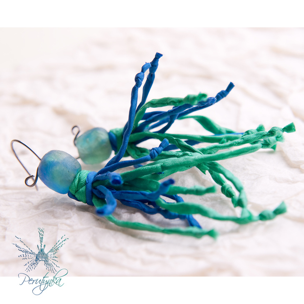 Spolu s hedvábkami jsou použity recyklované africké korálky ze skleněných lahví.