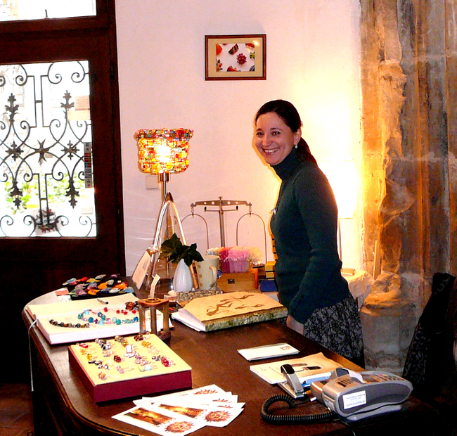 Amélka za pultem v aleale krámku