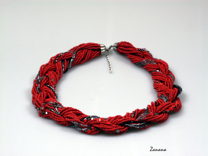 Červený spletený náhrdelník