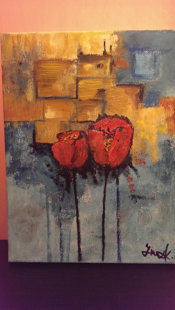 obrázek na plátně je namalován akrylovými a olejovými barvami, mé první seznámení s olejem,