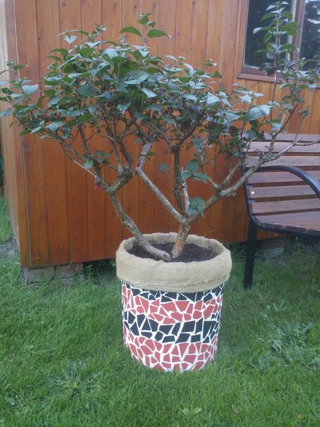 Takto jsem si udělala květináč na fuxii z mozaiky.