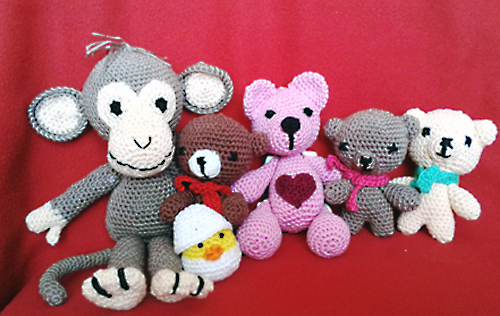 Háčkovaná zvířátka z přírodní příze, plněné dutým vláknem.