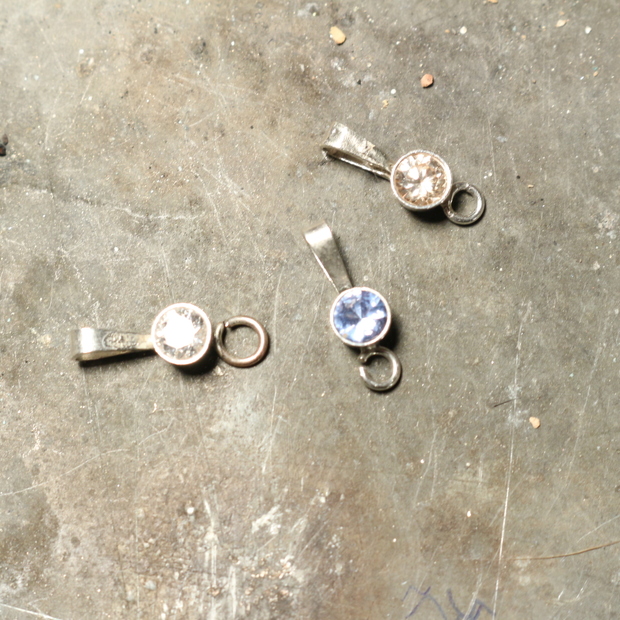 kubický zirkon čirý a odstín champagne, syntetický spinel