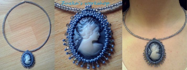 korálkový náhrdelník s kamejí vyráběný jako první cena do soutěže