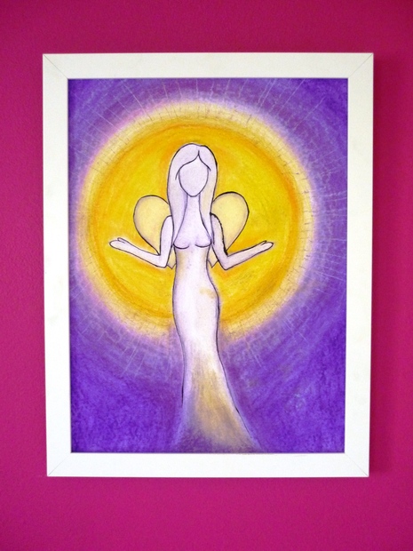 suchý pastel na klasickém kreslícím kartonu, 30 x 40 cm, fixováno, bílý rámeček