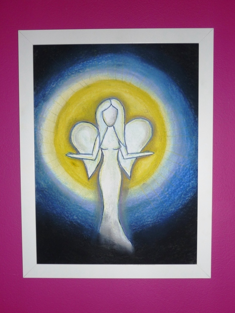 suchý pastel na klasickém kreslícím kartonu,30 x 40 cm, fixováno, bílý rámeček