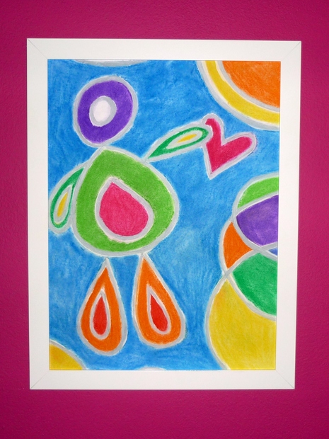 suchý pastel na klasickém kreslícím kartonu, 30 x 40 cm, fixováno, bílý rámeček