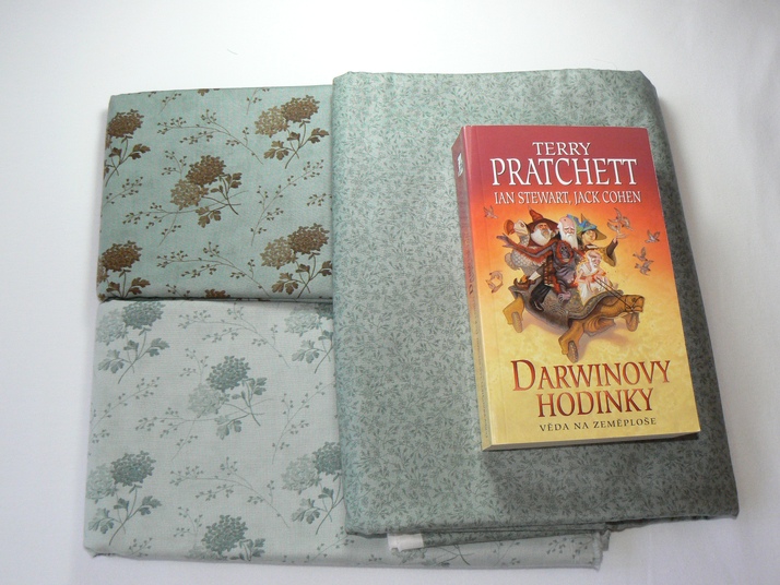 modrá barva, potisk ve stř. modré a stř. hnědé, vyfoceno s knihou velikosti A6