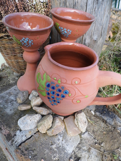 Džbán a číše, glazovaná keramika