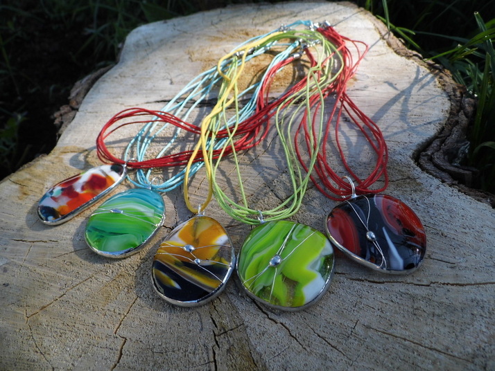 Barevné šperky, letováno cínem se stříbrem,spékané v peci