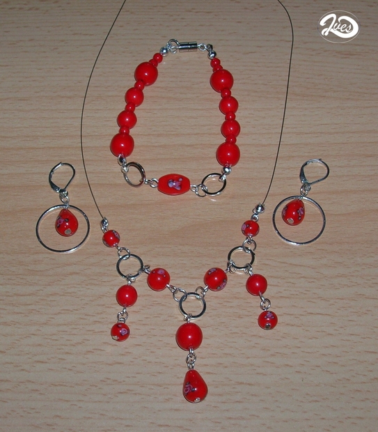 Červená s kytičkou 0015
