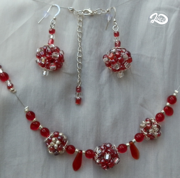 Červeno stříbrné kuličky 0083