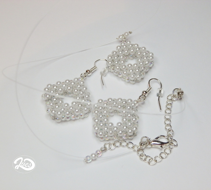 Čtverec duhová a bílá perle´t 0191