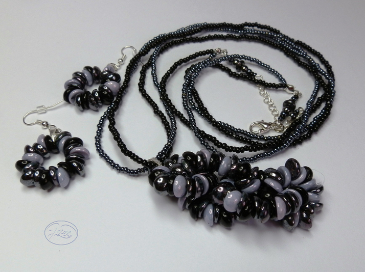 Řetěz černý, fialový a hematit 0216