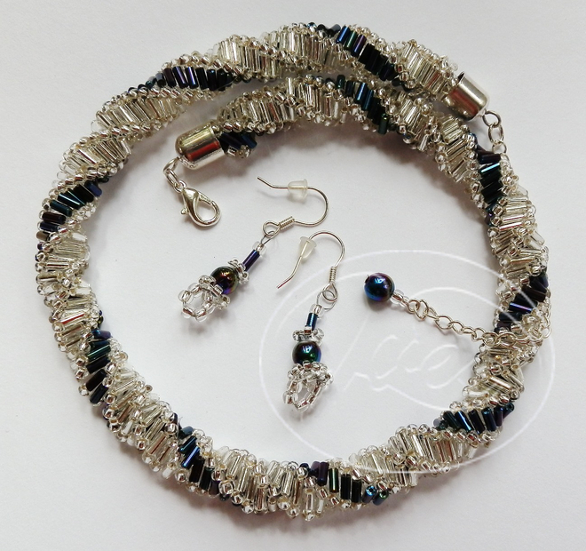 Spirála stříbrné a petrol tyčinky 0225