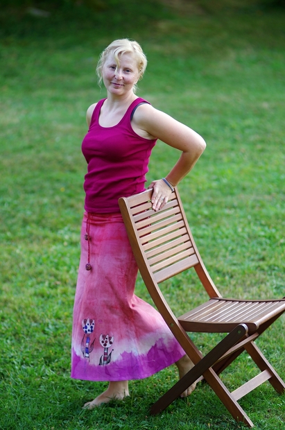 Krásná majitelka sukýnky bambulačky