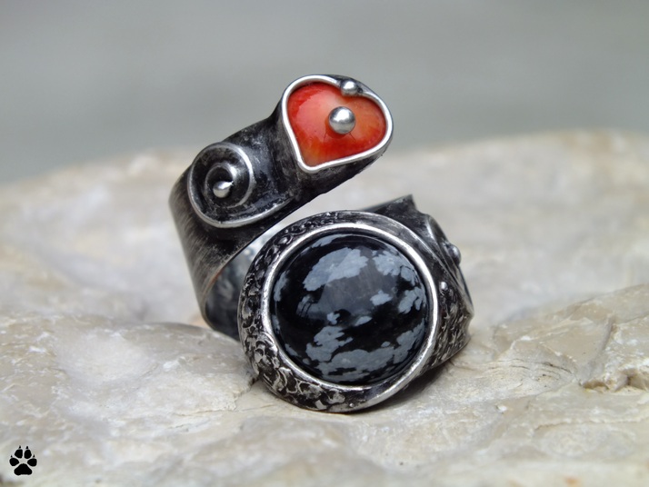 stříbrocín,drát,měď,obsidián vločkový,korál