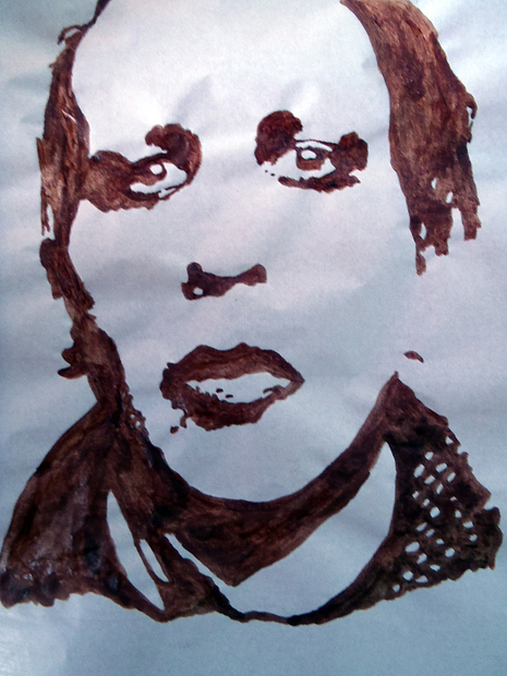 Marilyn Manson malován vepřovou krví na kaligrafický rýžový papír o velikosti A4.