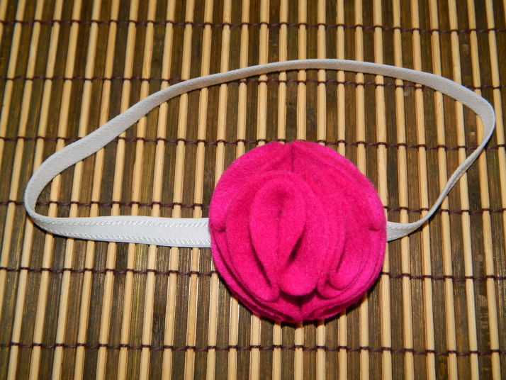 Malinová čelenka průměr květu 6 cm, obvod gumy 39 cm.