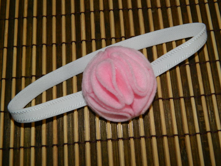 Něžná růžová čelenka, velikost květu 5 cm, obvod gumy 31 cm. Newborn