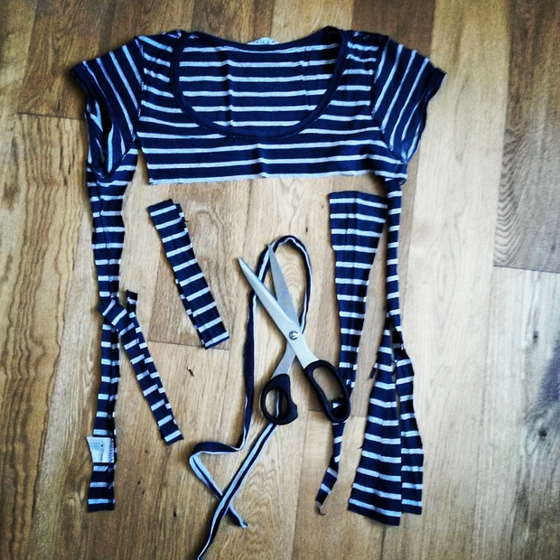 Ze starého trička a šatů jsem dětem ušila nové čepičky a nákrčníky