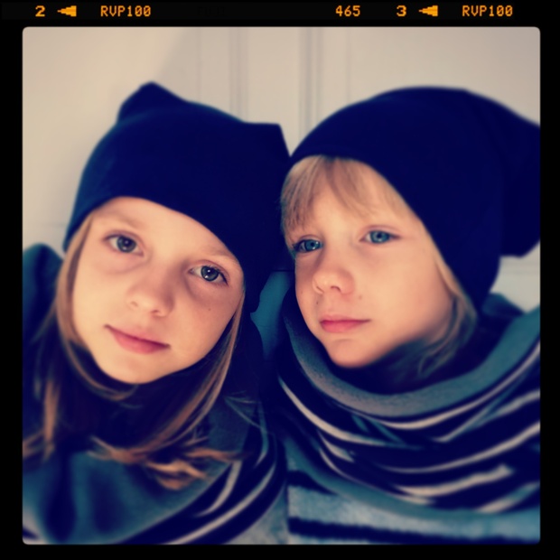 Ze starého trička a šatů jsem dětem ušila nové čepičky a nákrčníky