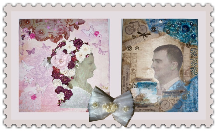 Obrazy byly vytvořeny formou embossing + scrapbook. Originální, svatební dárek.