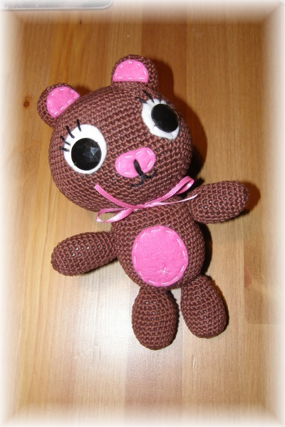 háčkovaný medvídek ze 100% bavlněné příze, plněný dutým vláknem, barevnost na přání