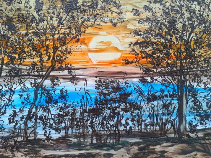Začínala jsem u malování horkým voskem a enkaustickou žehličkou,ale akryl mě uchvátil více, nicméně pár ukázek enkaustiky, kterou občas stále maluji.