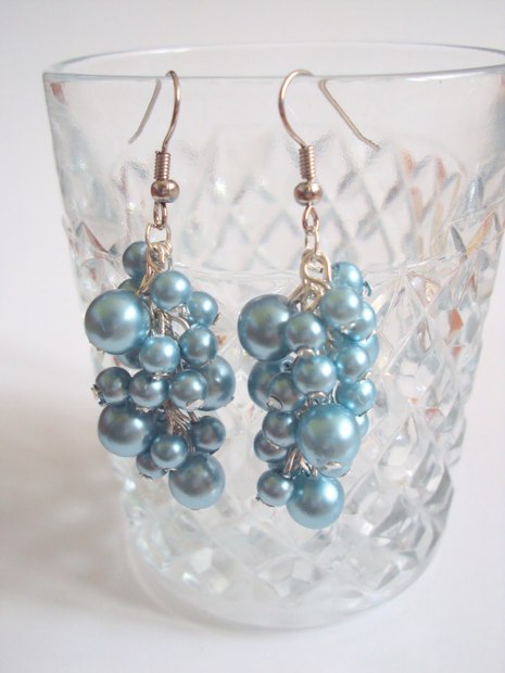 Náušnice vyrobené na zakázku z perliček tyrkysové barvy