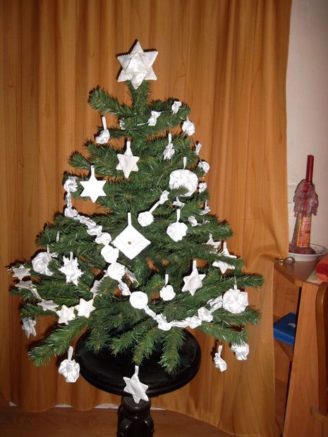 Ručně šité vánoční ozdoby výška stromečku 80cm.