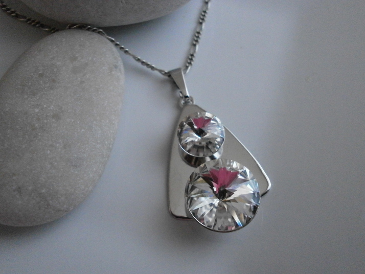 Přívěs trojúhelníkový-materiál Rhodium v kombinaci se Swarovski- barva Crystal. Možno v různých barvách.