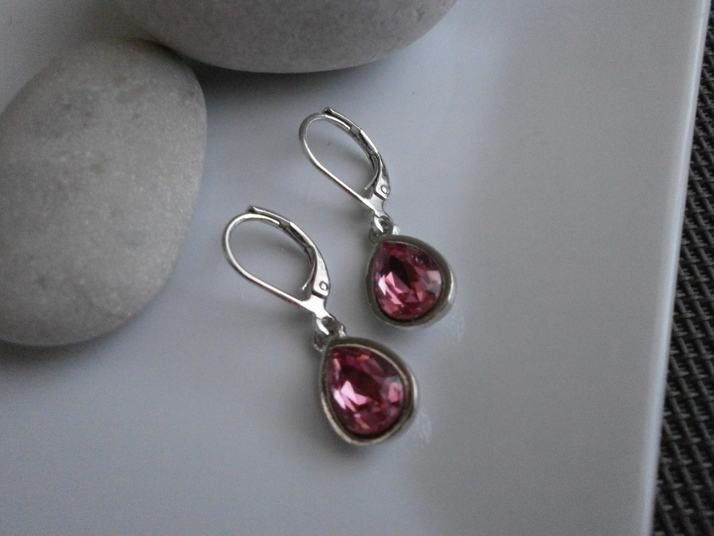 Náušnice slzička z materiálu Rhodium v kombinaci se Swarovski. Barva Rose. Možno v různých barvách.