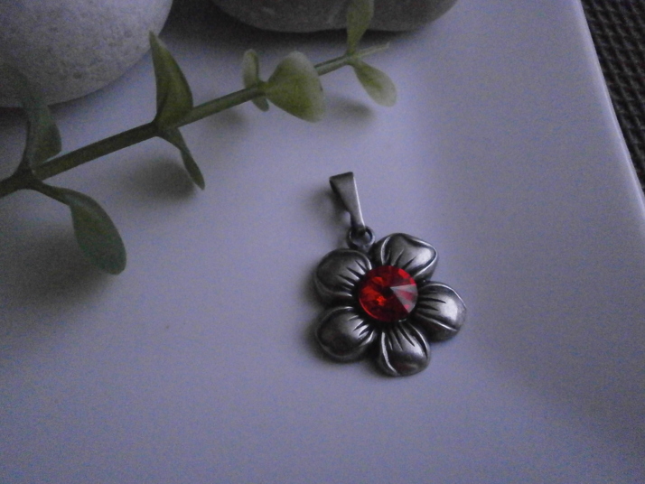 Přívěs kytička z francouzského starostříbra v kombinaci se Swarovski. Barva Ligh Siam. Možno v různých barvách.