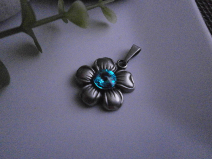 Přívěs kytička z francouzského starostříbra v kombinaci se Swarovski. Barva Aquamarine. Možno v různých barvách.
