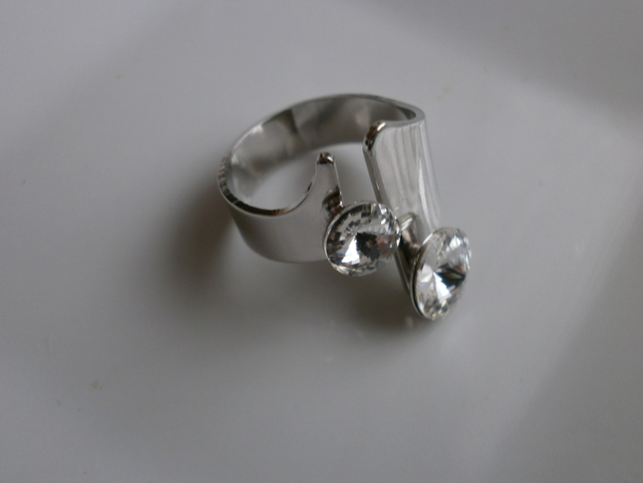 Prsten dvojka z materiálu Rhodium v kombinaci se Swarovski. Barva Crystal. Možno i v jiných barvách.