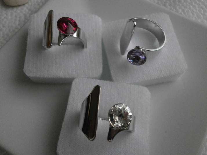 Prsten zvláštní z materiálu Rhodium v kombinaci se Swarovski. V různých barvách.